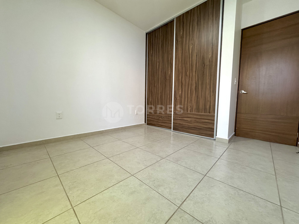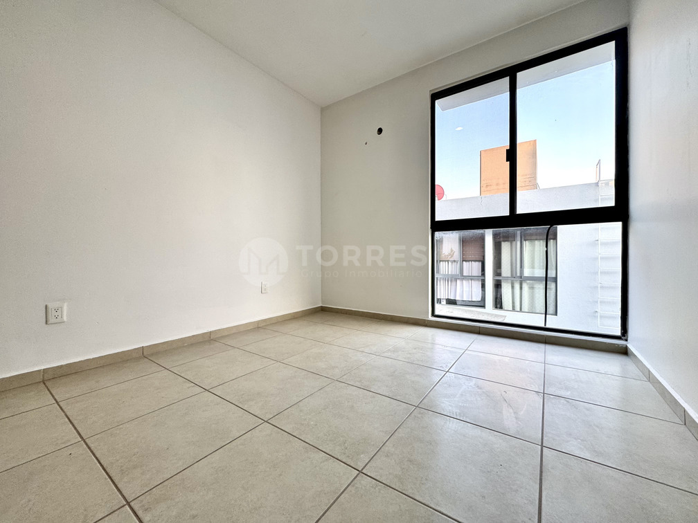 La propiedad incluye cochera para dos autos y acceso a amenidades como terraza techada con alberca, parque con juegos infantiles, cancha de basquetbol y capilla. Todo en un entorno seguro y bien cuidado.