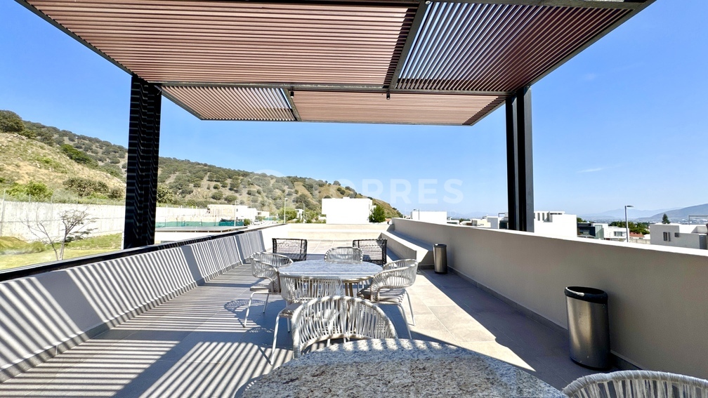 Entre sus amenidades premium se encuentran la casa club con alberca, gimnasio con equipo moderno, cancha de fútbol, cancha de pádel y juegos infantiles, ofreciendo espacios de recreación para toda la familia.